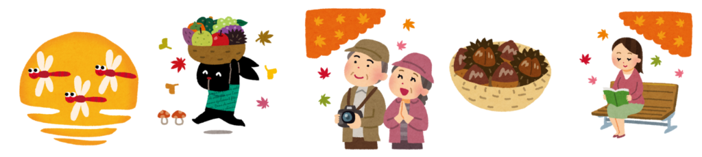 秋は過ごしやすく、山が赤や黄色に染まります。紅葉狩りや、収穫の恵みを味わう季節です。