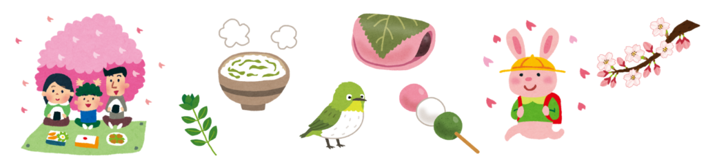 春は桜の季節です。3月から4月にかけて桜が咲き、人々は「花見」と呼ばれるピクニックを楽しみます。新学期や就職の始まりでもあり、出会いの季節です。